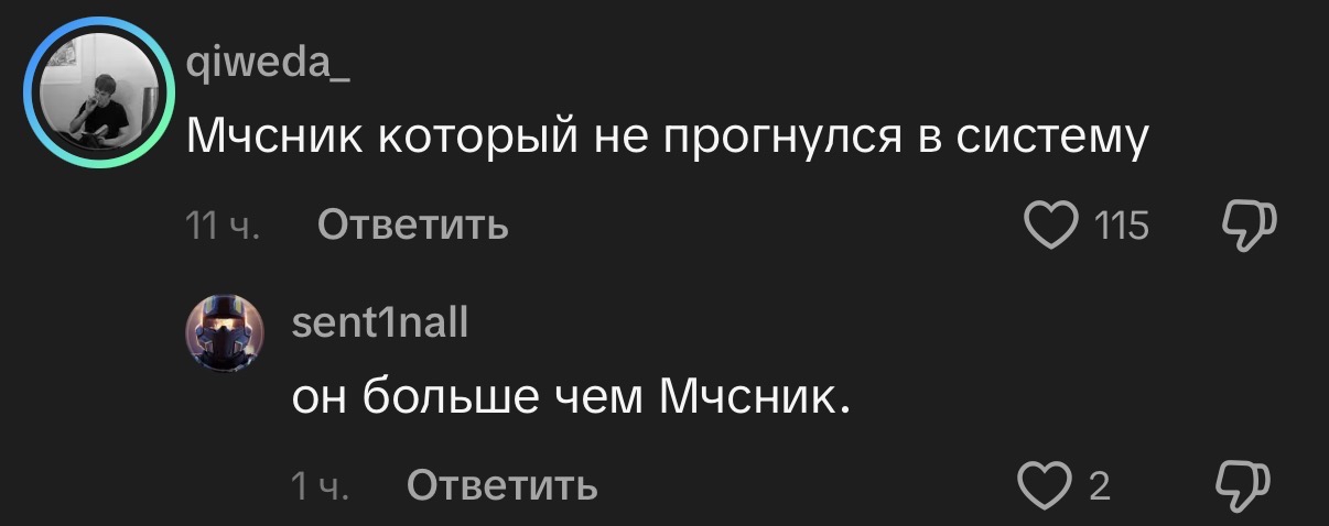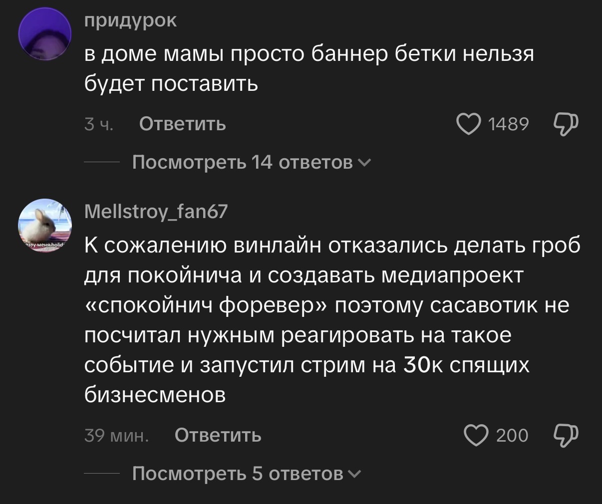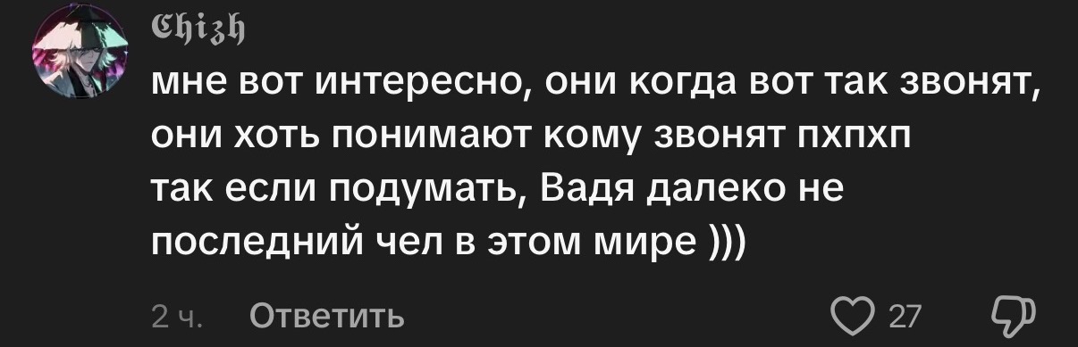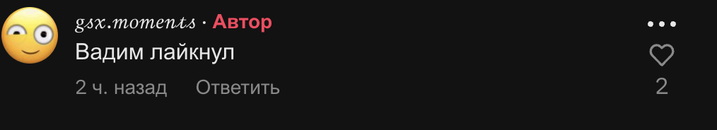 Я вас молю, ну перестаньте блять обращать внимание кто что лайкнул в тиктоке. Если что ТОКСИС тикток с шипом Вади и Наташи лайкнул. Это нихуя не значит. Для них лайк это хуйня собачья, вон Наташа лайки как из пулемета ебашит, ей вообще похуй че там на видео, главное чтобы она была там