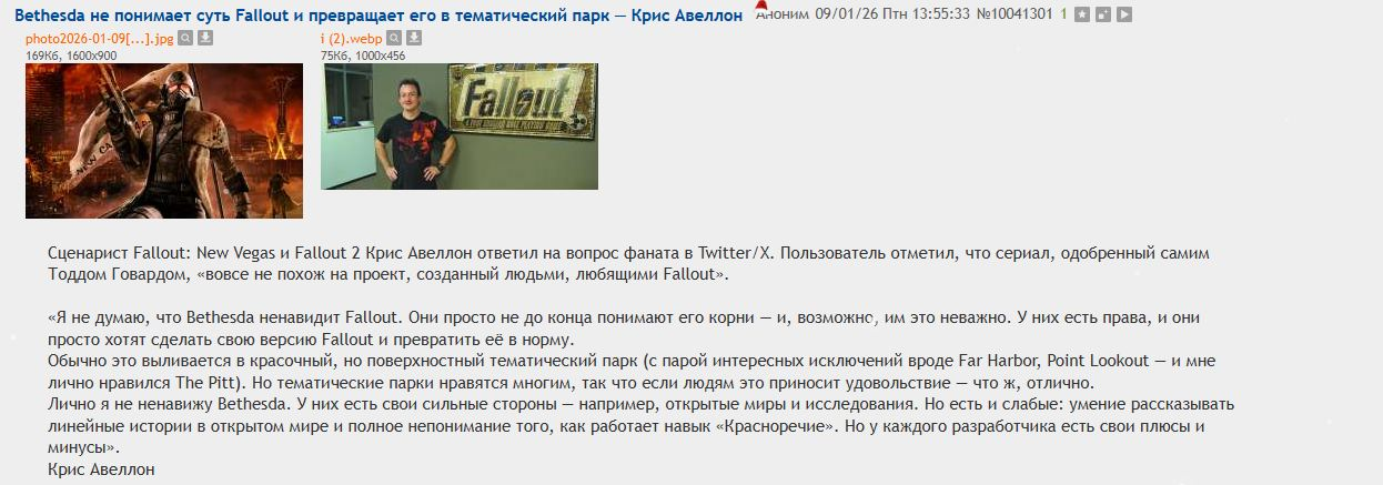 на старый кал уже похуй, даже проводили исследования официальные, где люди выбрали фолыч 4 и фолыч 76 и старфилд как лучшие рпг игры, а после сериала тем более люди пойдут играть в эти игры потому что там где лучше графика там лучше игра