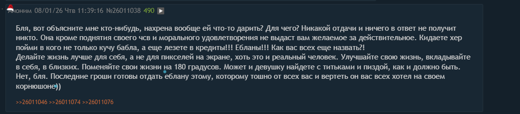 После вчерашней горы подарков, внезапно нормальной жопы и весёлого милого личика с приличными сиськами местные жирные лысые карликовые объебосы на хейтерах уже не знают до чего доебаться, такими конченными быть, тьфу блять...