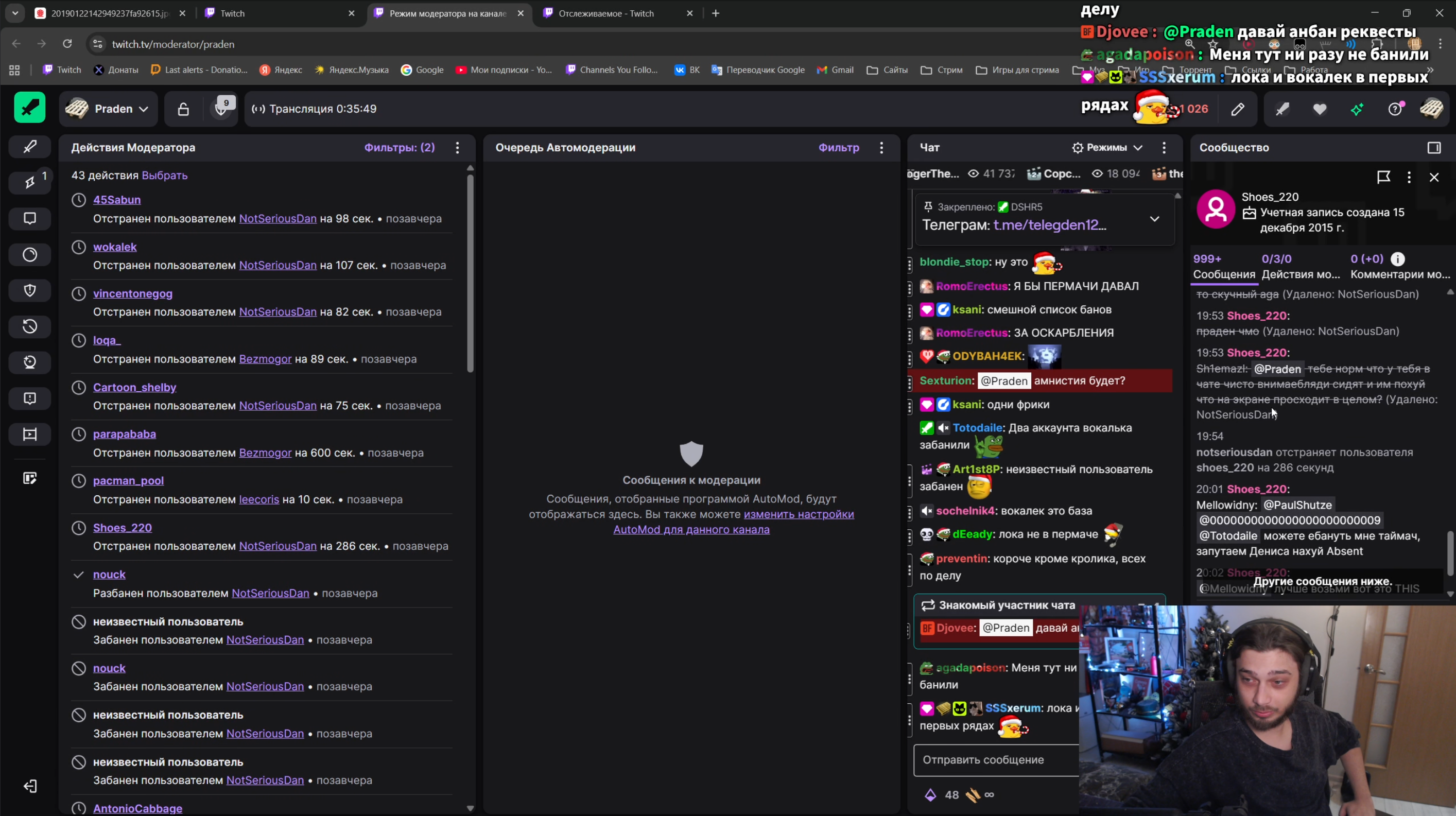 да нихуя, тот шиз банил всех подряд, даже тех, кто писал привет. Праден давит ебланов, которые очевидно начитались говна и не нужны