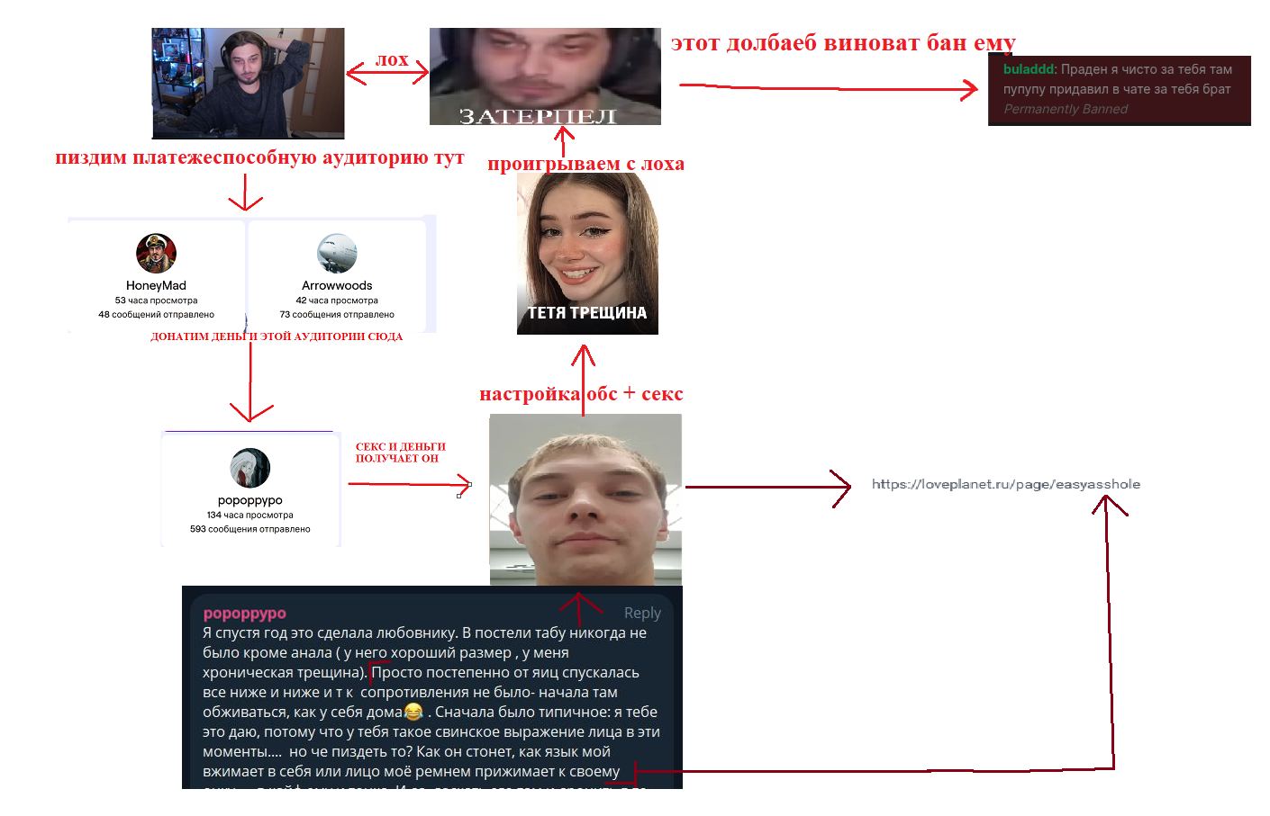 Там на схеме есть чел которого забанили. Он его разбанил лишь после давки от чата. Щас понятно что после кипиша он всех разбанил он же чмо которое боится любого негатива