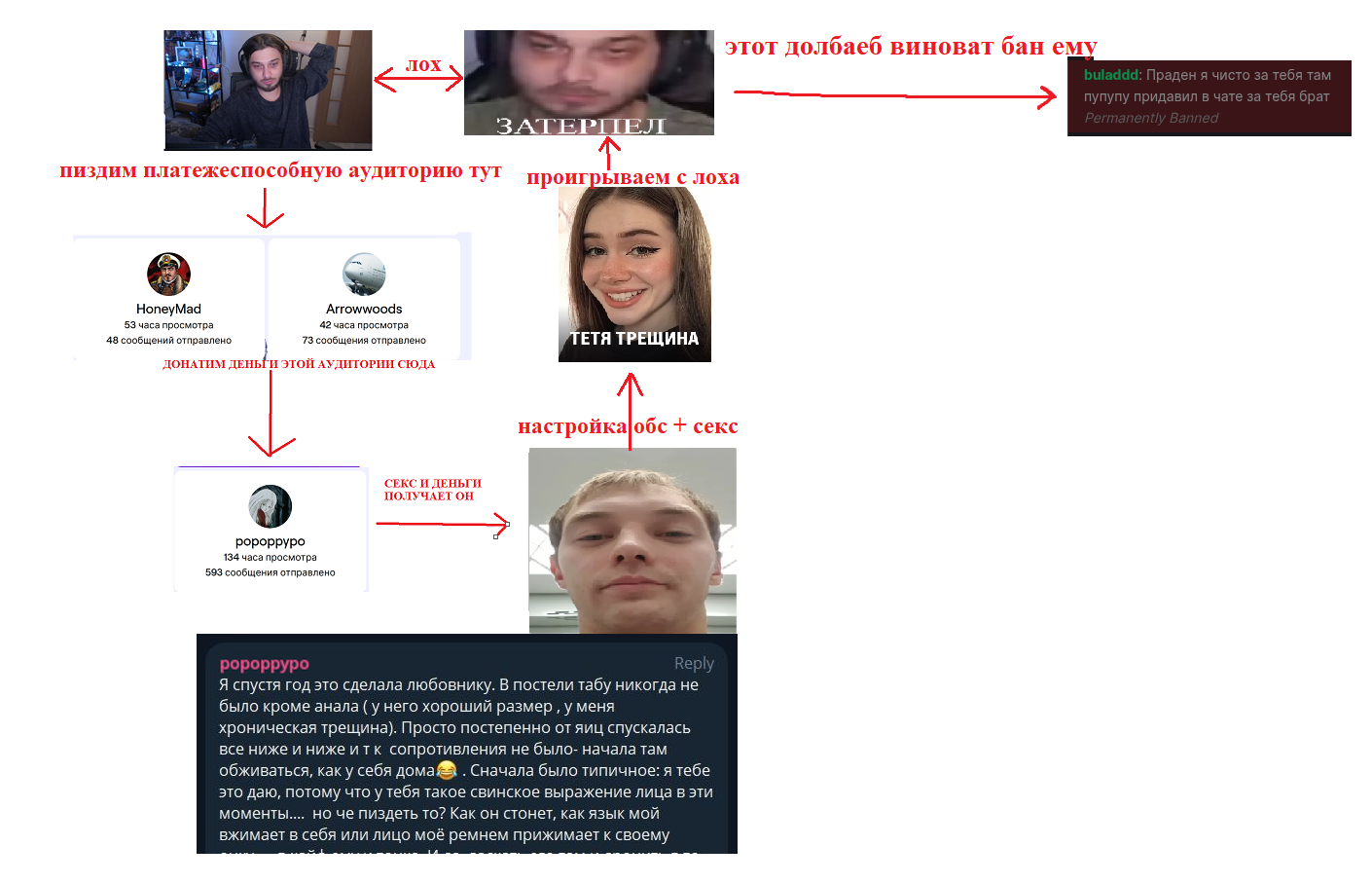 >>26023887 >>26023849 >>26023835 >>26023828 С другой стороны было бы прикольно если бы все стримеры подходили к таким вопросам так же творчески. Типа «жопа в крови, гитман на арене»