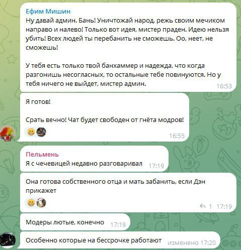 Кстати а почему телега такой дырявый кал, который хранит буквально каждый пук? Ладно бы там была закрытая инфа, так буквально кучей ботов можно пробить акк человечка, узнать в каких каналах он состоял и куда что когда писал.