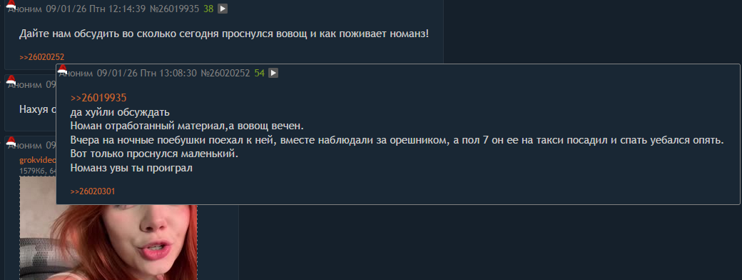 >>26024107 Смеётся, но видно что прихуела. Там до этого был разговор, кого нужно банить, он хотел банить тех, кто его мать шлюхой называл, а она такая "да че их банить мы че ответить не сможем им?". Это очень грустно смотрится.