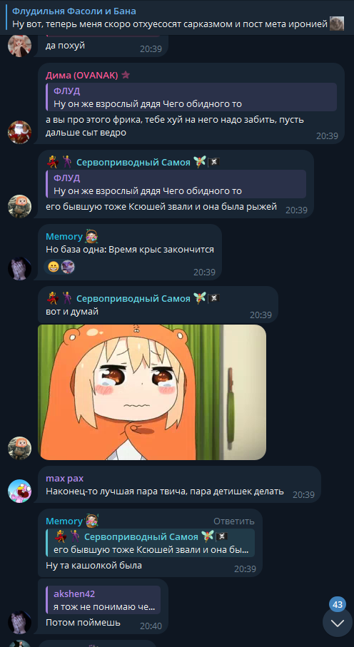 >>26030204 Даж симпы удивились как слишком адекватно жопич писал в чат. Что типо на него непохоже и тд Рождается теория, что он знал всё, что это конторская. Ну там яблоку негде упасть, все в баннерах. И он знал, что насрал ей на подружек. Поэтому прекрасно понимал на что идет, что будет скрытая агрессия проявлена, притом снихуя, что все охуеют, что он типо такой в чат "пу-пу-пу" напишет. А ему пожилое чмодье, здарова нахуй, нижний интернет, слыш, ну ты это, пиздуй отсюда к своему гилтикусу. Спецом пошел разыгрывать жертву. Хз чо он там дальше придумает. Пока как хуйня выглядит идея. Но на некоторых произвело впечатление, что так с явным негативом преобразилась и давай его хуями крыть завуалированно, защищая своих хозяек