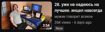 >>26030671 Дениска в тупике. Он проебал популярность. Проебал зрителей. Проебал само желание стримить. Все что он умеет, нажимать кнопку "Начать трансляцию". Это он и продолжает делать по инерции.