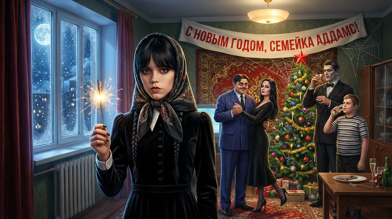 Интересно, что Старый Год заканчивается в Среду, а Среда по английски это "Wednesday", как название моего любимого сериала. Поздравляю всех фанов и завсегдатаев и старожилов Венсдей-треда с Наступающим Новым Годом! Пусть у вас все будет хорошо. Желаю много всего интересного, мемного, счастья и здоровья. Очень приятно было с вами познакомиться, общаться! Много мемного было, короче, норм. Отдельное поздравление для Анона-Венсдей. Не знаю, обитает он здесь или нет, но я с ним познакомился в Sora2-треде, когда он неожиданно начал постить ролики с Венсдей. Так я удачно попал. Интернет в то время пока не блочили, и я успел, сколько успел, столько скачал. Я тогда форсил хлебоходы, и это было весело. Но ролики с Венсдей, это пик величества! Храню, смотрю, они очень крутые, поднимают настроение, заряжают энергией! Сколько мы тогда пережили: и блочили эти треды, и даже модер удалил сука легендарный ролик Венсдей и хлебоходы, прям под носом, когда анон поделился, и я не успел скачать, его удалили. Поэтому желаю тебе всего самого лучшего, спасибо за те ролики! И актерам, девчонкам сериала, особенно Дженне, желаю всего самого лучшего! пересмотрел отрывками 6ю серию в оригинале, какой же крутой вайб! Иви круто играет, и голос у нее не писклявый, а реально как у социапатов-психопатов, немного приглушенный, круто! Эмма тоже подросла в актерском мастерстве. Дженна великолепна, видно, что горит актерством. Всем дождаться 3го сезона. Надеюсь, они не перейдут к полной мрачности, а оставят небольшой кринж, неловкость, черный юмор и саркастический, циничный тон, но и добавят немного реалистичности и трэша как в фильмах Тарантино. С наступающими Новым Годом! Храни вас Бох! шапка крутая