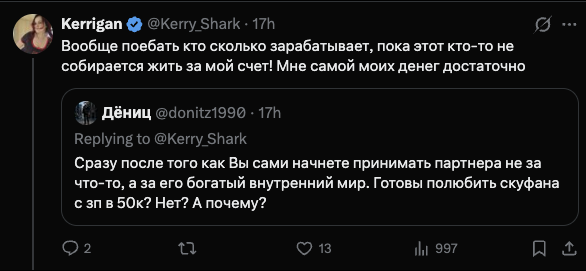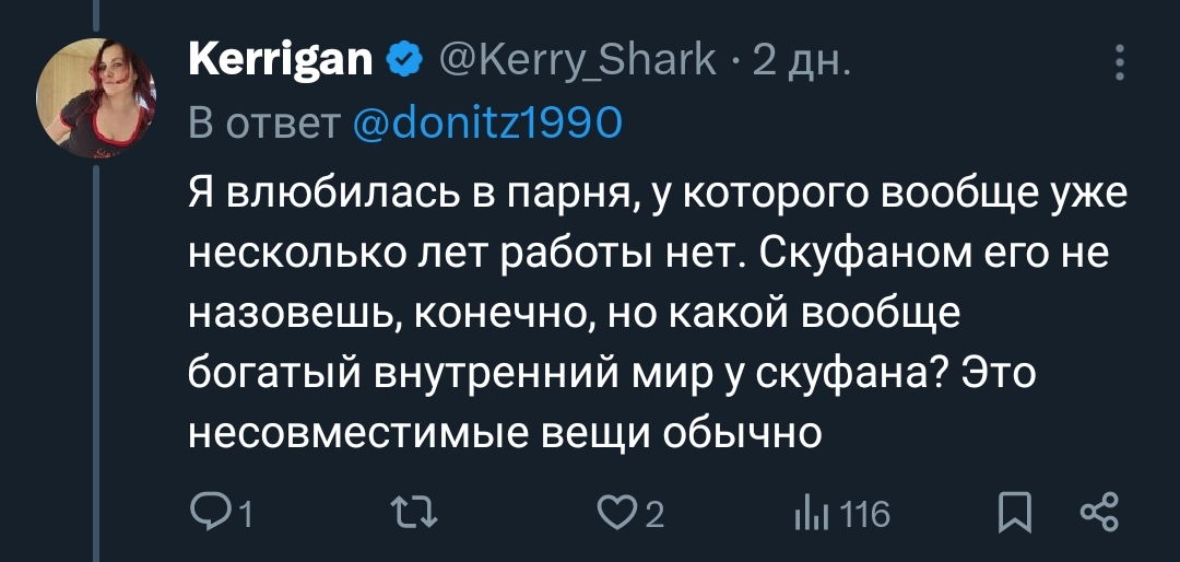 Кулёх там за отношения затирает "Люди не готовы на диалог и решать проблемы". Блять, этот куль максимум шмоньку Алинки нюхал (ну ещё пашкин солёный) "Не хочу быть ни от кого зависимым"