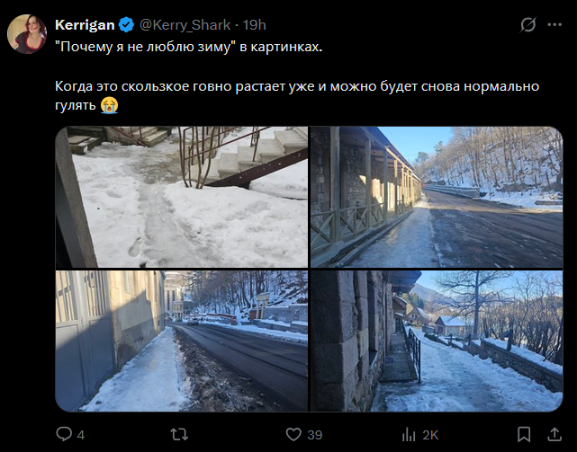 Почему бабка сначала записывает видосы с квдробобера как она валяется в с негу и кайфует, а потом она снова не любит зиму и ждет пока все растает что бы погулять?
