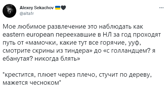 >>26033992 Женщин с детства программируют матери, что все русские мужики твари, мрази, ублюдки и все такое. Так что они готовы под любого лечь, главное что бы не русский.