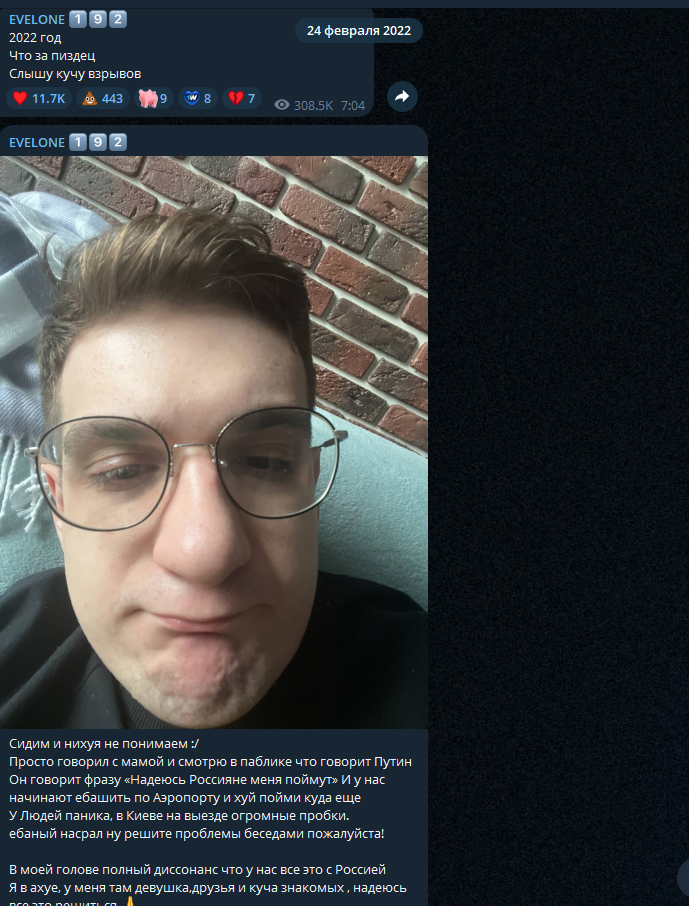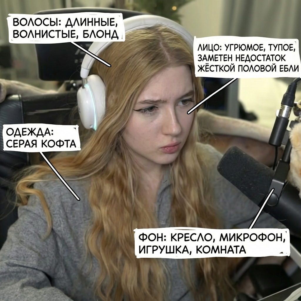 >>26038487 Почему вы всё романтизируете? ей похуй нахуй, она в тильте из-за того что ей пришлось скипнуть вчера афтерпти и что она не набухалась вчера и не ползала на коленях ко всем мужикам, просто решила в честь солидарности к ёбырю не поехать на хрючево-бухалово и поэтому в тильте.Она сама говорила много раз чату что бы не романтизировали и не надумывали всякой хуйни которой нет