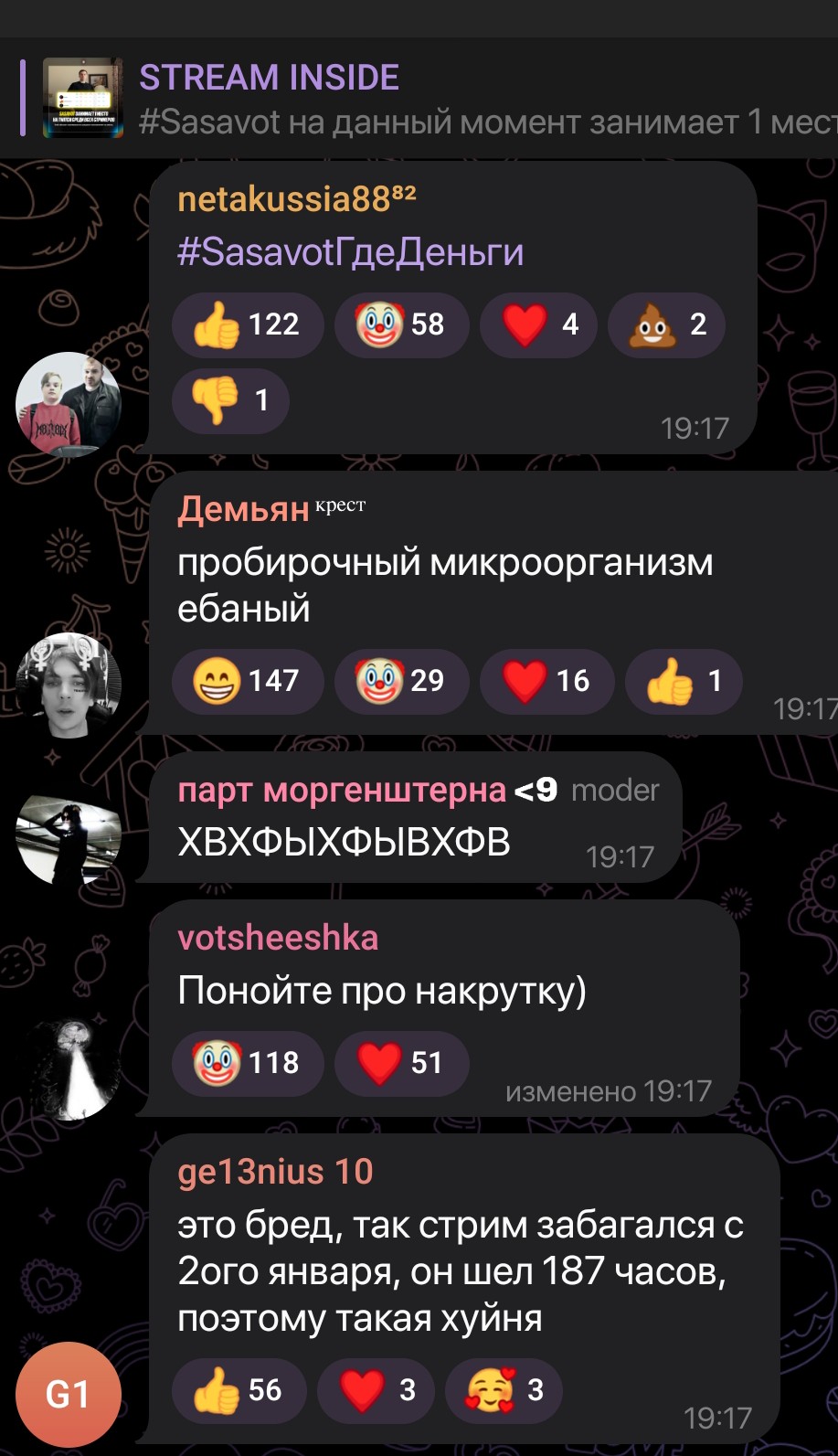 >>26040623 На самом стриме 4ч 3 минута, на записи в тг последняя 38 минута. Там видно Каролину, маму и еще есть который на В начинается но плохо видно на записи, поэтому хуй заскринишь