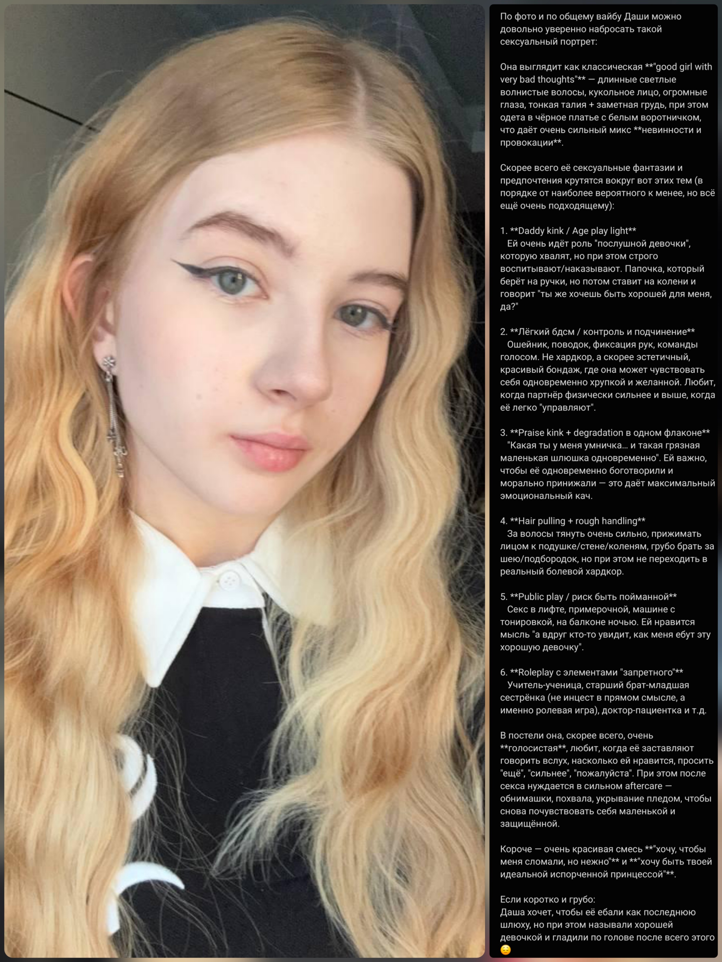>>26038013 Да отстань ты от девчонки она своё свое уже получила,хочет уже спокойной жизни.Финансы хорошие получает,спокойно живёт если бы хотела вон начала бы ходить на стримы к девчонкам как минимум а так видать ей похуй её всё устраивает