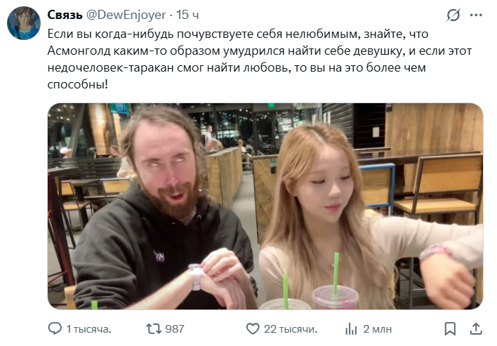 Ребят, я понимаю что вам хочется валидировать свою важность и вообще смысл нахождения в этой жизни хотя бы через давку в треде чмодья казиношного ебаного, сохранять копиум что вы на что-то влияете в его жизни, вы вот нашли пример Амирана, но поверьте - если у такие людей и есть какие-то ментальные проблемы, то явно не из-за людей из интернета. Если говорить об Илье, то он был алкашом примерно всегда, даже до своей известности, а почему так вышло даже он наверно не знает.