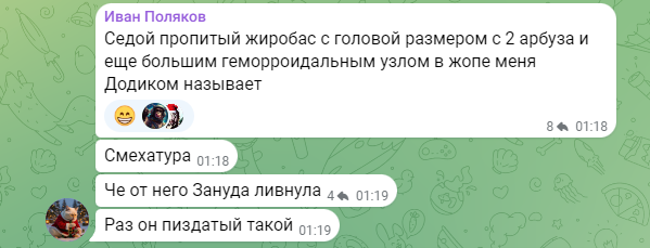 этот человек срал и ссал вышедшему в тираж чмодью в свиное рыло, пока тот смешно утирался, отплевывался и мямлил что-то про ботов, накручивая себе в канал реакции сердечек