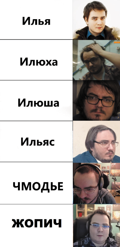 Ребят, а представьте вас бы в школе там например все называли Жопичем или Чмодьем? Причём на регулярной основе как будто это ваше имя...Я бы лично не выдержал такой травли и наверное бы сделал что-то с собой... Давайте подумаем как Илье нелегко... Давайте называть его просто по имени или никнейму...