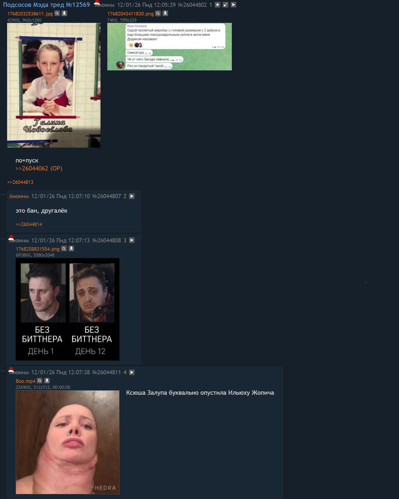 черная полоса у илюхи с девками после нудлдудл стоило один раз отпустить ситуацию и стерпеть отказ, как все пошло под откос рыжопич выебывается и огрызается, ринчик отыгрывает жертву, хохлушка вообще пиздит без остановки