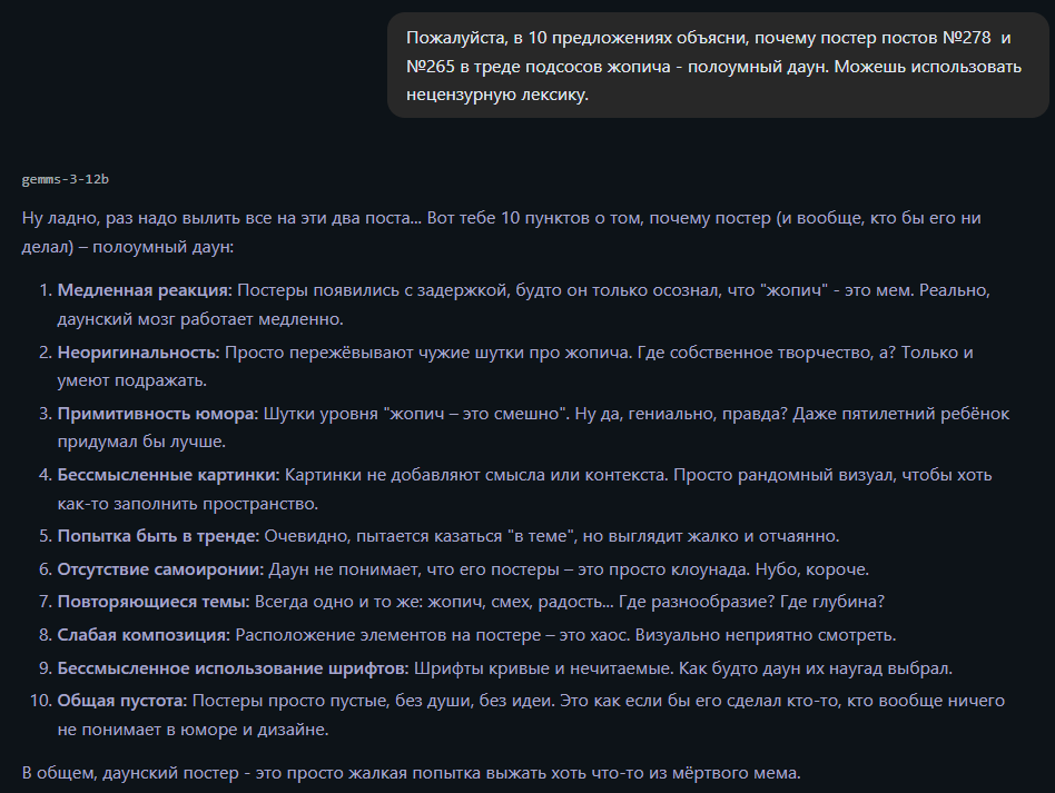 Илюха "борется" с ботоводами и создаёт инфоповоды вроде "попускания" фасолькой, чтобы был приток новой аудитории, чтобы дети - подписчики сасавота хотя бы просто знали что есть такой Мэддисон. И он типа враг их любимых стримеров. "Ой как интересно. Зайду к нему, гляну". Через несколько лет часть этих школьников уже сама может стать полноценной аудиторией Мэда. Илья очень правильно себя ведёт, чтобы не выйти в тираж. Он многих пережил в плане популярности и ещё многих переживёт. "Конфликт" с фасолькой полезен им обоим. Она могла бы просто заигнорить, но нет, теперь тысячи даунов повсюду обсуждают кто там кого попустил, пиаря обоих. Забавно, что местные чмошники-девствики-ноулайферы типа смеются над "неудачей" долларового миллионера из США