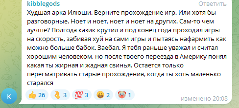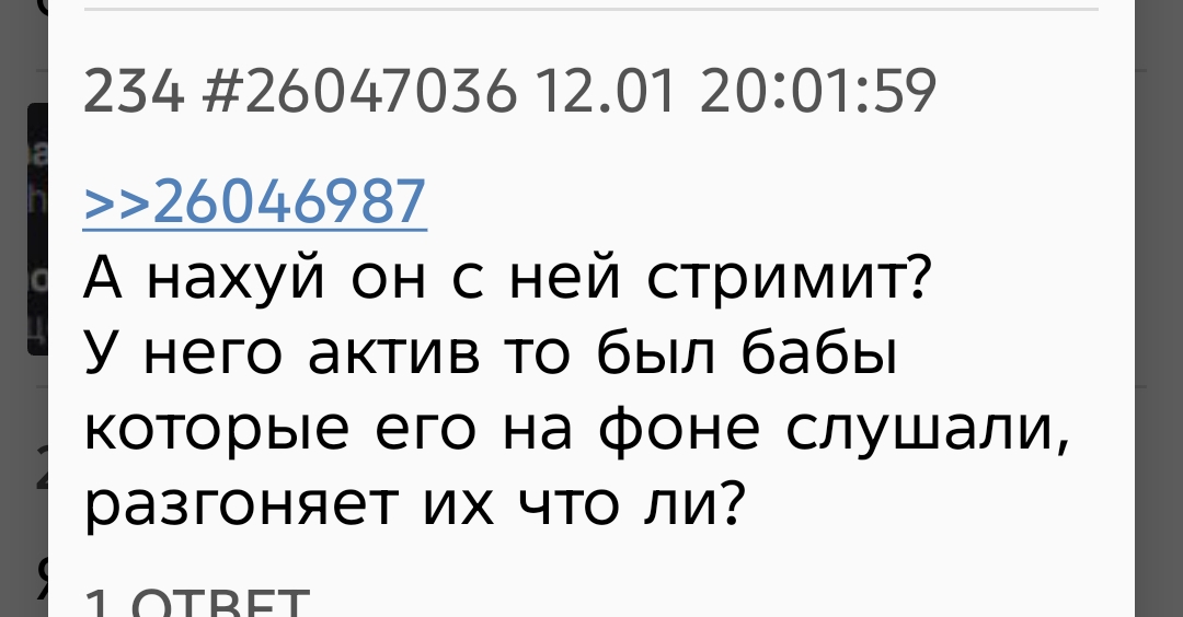 >>26048509 Потому что этот онлайн на повторах, он, блядь, чуть ли не выше, чем был до этого реальный онлайн у Дениса. То есть, ну, это просто бред, блядь. Зачем еще это может делаться? Я хз. Может, он просто не может столько стримить, как остальные миньоны. И ему надо часы просмотров так добивать. Я хуй знаю, блядь. Просто, ну, это абсурд. Это палево и бред. Но это еще не все. То есть, как бы, что я вижу вообще, заходя к нему на канал. если раньше у него были какие-то стримы, какой-то контент, то сейчас он просто, ну, я уже не знаю, уже третий месяц просто сидит с этой табулой вдвоем. Ему уже канал надо не Вилов Геймс называть, а переименовываться в Вилов Булу какую-нибудь. Потому что, ну, блядь, там больше вообще ничего не происходит. Причем я совершенно не понимаю, кому может быть интересно на это смотреть Денис импозантный мужчина, он всегда нравился женщинам И у него, кстати, я думаю, что большая довольно аудитория женская Им, бля, интересно смотреть на это Мне кажется, если поставить себя в позицию фанаток Дениса То он мне, блядь, был противный, как будто бы Типа, я не говорю, что надо скрывать свои отношения или еще что-то. Ну, ты как бы обознач бы, типа, я не говорю, что надо скрывать свои отношения или еще что-то, но ты как бы обозначил, вот у меня есть девушка красивая, все, замечательно, она прекрасная стримерша, ну и стримьте, блядь, я тоже какое-то время там жил со стримершами, Но у меня даже мыслей не было лезть к ним на канал или просто с собой сажать. Ну, там отдельные случаи были, но это какой-то бред. Постоянно. Ну, у меня даже мыслей не было лезть к ним на канал или просто с собой сажать. Ну, там отдельные случаи были, но это какой-то бред постоянно-то. То есть, ну, как бы, а смысл? Это реальный онлайн, мне кажется, просто уничтожает. Там даже с ботами уже осталось вообще всего ничего. То есть, на повторах было больше после Нового года, чем сейчас. Я уж молчу там о цифрах, которые Денис в прайме способен выбивать. Причем честных. Там от пяти до десяти тысяч. Просто сидит, блин, со своей девушкой. Тоже стримершей. Уже начинает создаваться впечатление, что это ее канал. Мне уже кажется, что она, знаете, как это... Как шпионка там, типа, от агентства GCA заслана, типа, к Вилавгеймсу, чтобы подмять его. Потому что, ну, это просто какая-то херня. Ну, типа, серьезно. Типа, я против любви отношений ничего не имею. Я уверен, что она прекрасная женщина, которая готовит замечательное мясо на Новый год, так сказать. Но, блядь, типа... имею. Я уверен, что она прекрасная женщина, которая готовит замечательное мясо на Новый год, так сказать. Но, блядь, типа, просто представьте, что я сейчас замутился в какой-нибудь стриме. Трудно это представить, конечно. Я сам, ну, типа, в шоке был бы от такого развития событий. Ну, возьмем какую-нибудь совсем уж страхоебину.ину кориум си например вот я замутил с корием си я просто блять говорю все пацаны нахуй сегодня у меня кори в гостях и мы просто сидим блять сидим целыми днями с корием си блять я вам показываю как аккорием все замечательно она со мной играет целыми днями в игры ну мы показываем наш бы так сказать потом снова играем в игры потом я говорю какая замечательная давайте к ней на канал зайдем и так и за дня в день да вы бы наверное вы бы просто ну во-первых половину бы ушло потому что на это говно невозможно смотреть половину просто не хуесосил постоянно что я 