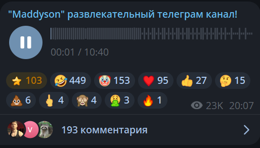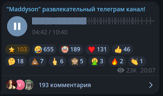 >>26047684 Он все делает ради актива в тг. А чем больше актив, тем дороже рекламу можно продавать. Он вдохновился Поздняковым и хочет так же. Чем сидеть пердеть в стул часами и стримить, можно высрать голосовую в тг и рубить бабки на рекламе. Затраченных усилий меньше, а выхлопа больше. Вот и думайте.