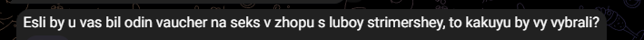 >>26056683 → Банальнейший отмыв. Это как огру2к 15 лямов в месяц "донатят". Зумеры-миллионеры видимо. Как анон выше и писал - сидит режиссер и "донатит", а в случае с аналами - ахахах, завоз