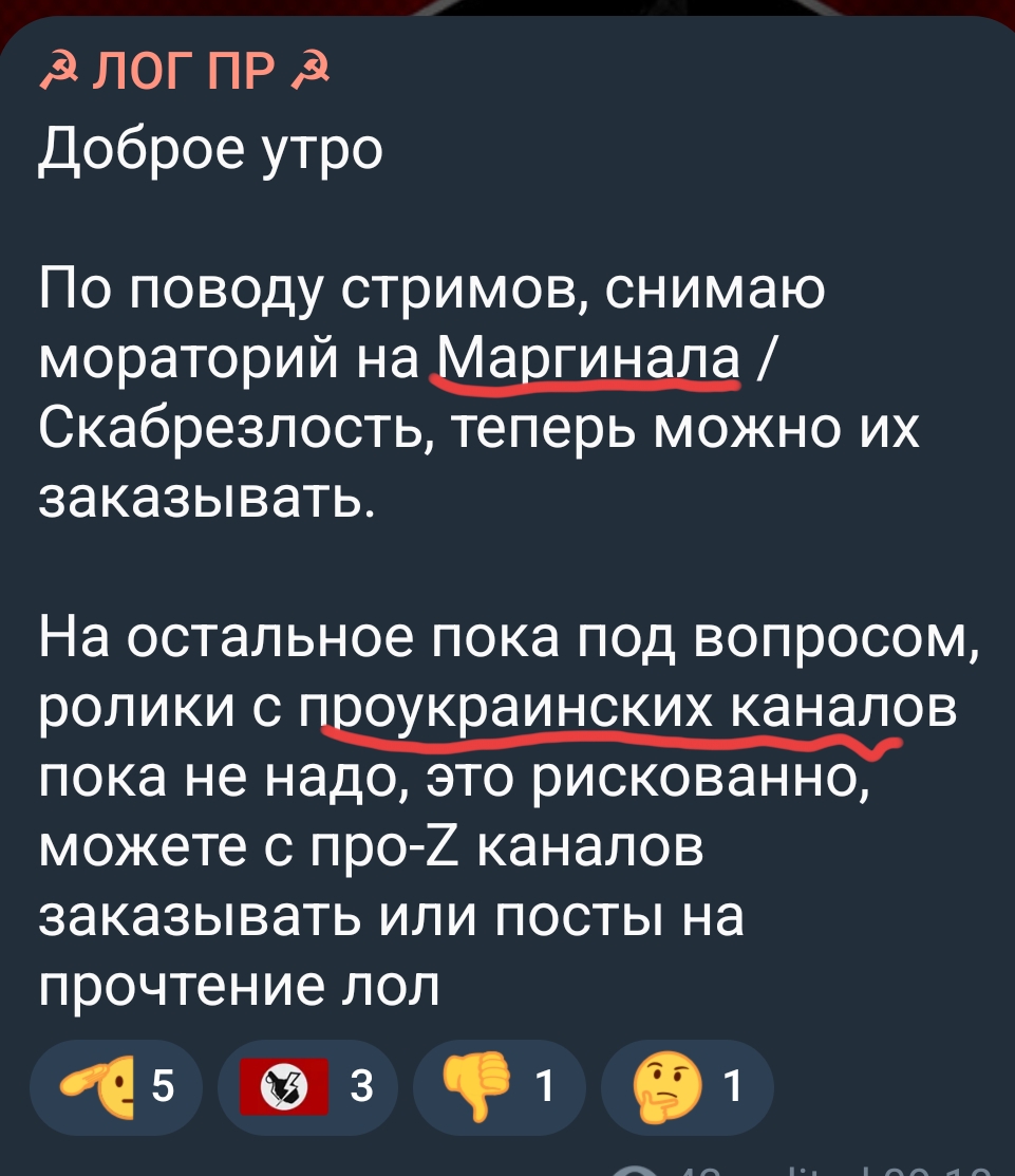 Ну Топаз в их общение и сказал, что несмотря на разногласия сейчас для него важнее - это их общие усилия для победы над их общим врагом. Будет интересно увидеть, что изменится после окончания СВО