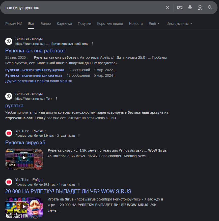 >>26019540 На счёт рулетки на сирусе бред конечно. Да она есть, но это не казик и там не лудят челы. Просто из неё можно рандомно ресурсов набить, обычно это выгоднее чем просто донатить. Там сервер в целом держится на васянах 40+ у которых мало времени на игру, но за то есть бабки с завода, которые они кидают на шмотки, которые сами не выбили. Тупняк конечно, но так во всех ф2п играх, особенно олдовых с возрастной аудиторией. Ну это так пояснение для тех кто чё то слышал, но сам не видел. От обычной офицалки по сути отличается тем что можно бесплатно играть без оплаты подписки, но добавлены донаты на шмот и всякую косметику. Толку от доната кстати почти нет для нормальных игроков т.к. это убивает для них же игру. Ну купил ты шмотки, а делать то что? Суть там в развитии и выбивании шмота, а купил сразу все и считай игру прошел.
