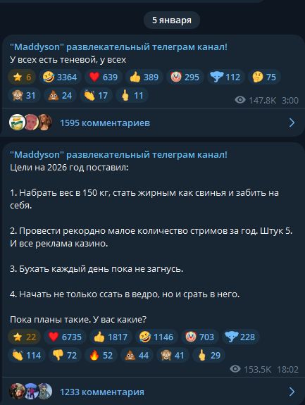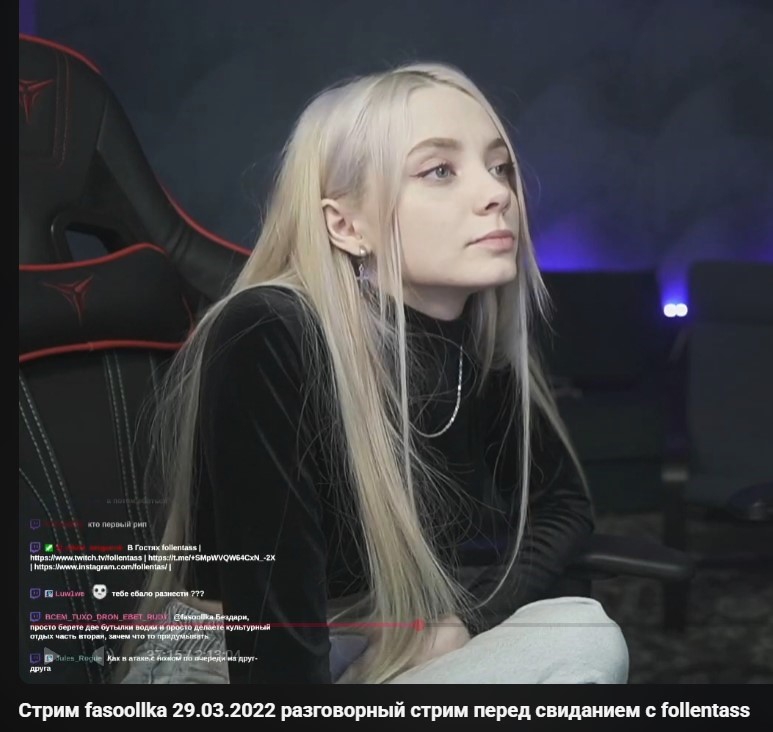 Чуханка сделала платный тг канал с записями типа чтоб по ап снова не снесли. Но это никак не поможет от нового ап. Просто послала свои принципы опять хотя кучу раз говорила что против платного тг. Сейчас есть каналы бесплатные с записями которые не сносят что ее в них не устраивает. Есть бот который все записи с ее твича в тг сохраняет. Просто решила снова переобуться и нажиться на аудитории рекламы ей уже мало.