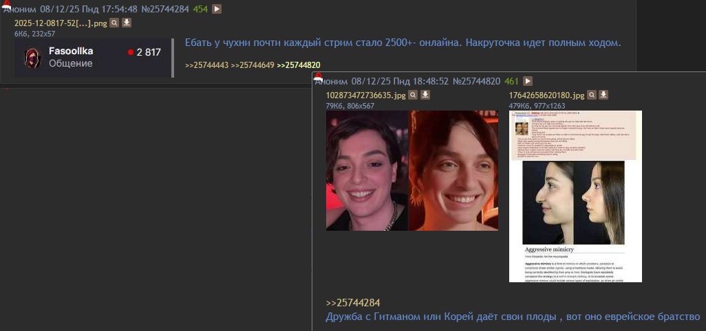 >>26045097 прям представил нахуй "а вы знаете, что она развалила такой тандем стримерский как модестал, ребята такие онлайны без накруток делали, но стоило им подселить ее, она как давай там сосать у всех мужиков на хате.." да, после такого не оправится пиздец >онлайн двачерами все двачеры, которые про нее знают, уже на канале как бы, нечего там повышать абсолютно, да и смежной аудитории у них и так навалом. у нее за 30+ скуфовики, естественно кто-то там "вырос на обзорах меда", но она старается обложиться исключительно молодыми симпами и оградиться от ебанутых стариканов, а те к ней лезут вечно с "включи трек жопича", она им подыгрывала там своими разговорами о нем иногда по типу "мэддисон да да знаю", а ща вскрылось, что для нее это какой-то по типу симонова чувак, хз чо он там делал, на твиче вроде стримил, а как будто бы и нет, потому что сасабот и коря его не знают, и они мне сказали, чтоб я больше о нем в хорошем ключе ничего не говорила и не мешала им делать деньги и строить 80тысячного популярного стримера, который уже скоро и с 100к сидеть будет на мобильной пораше рекламной