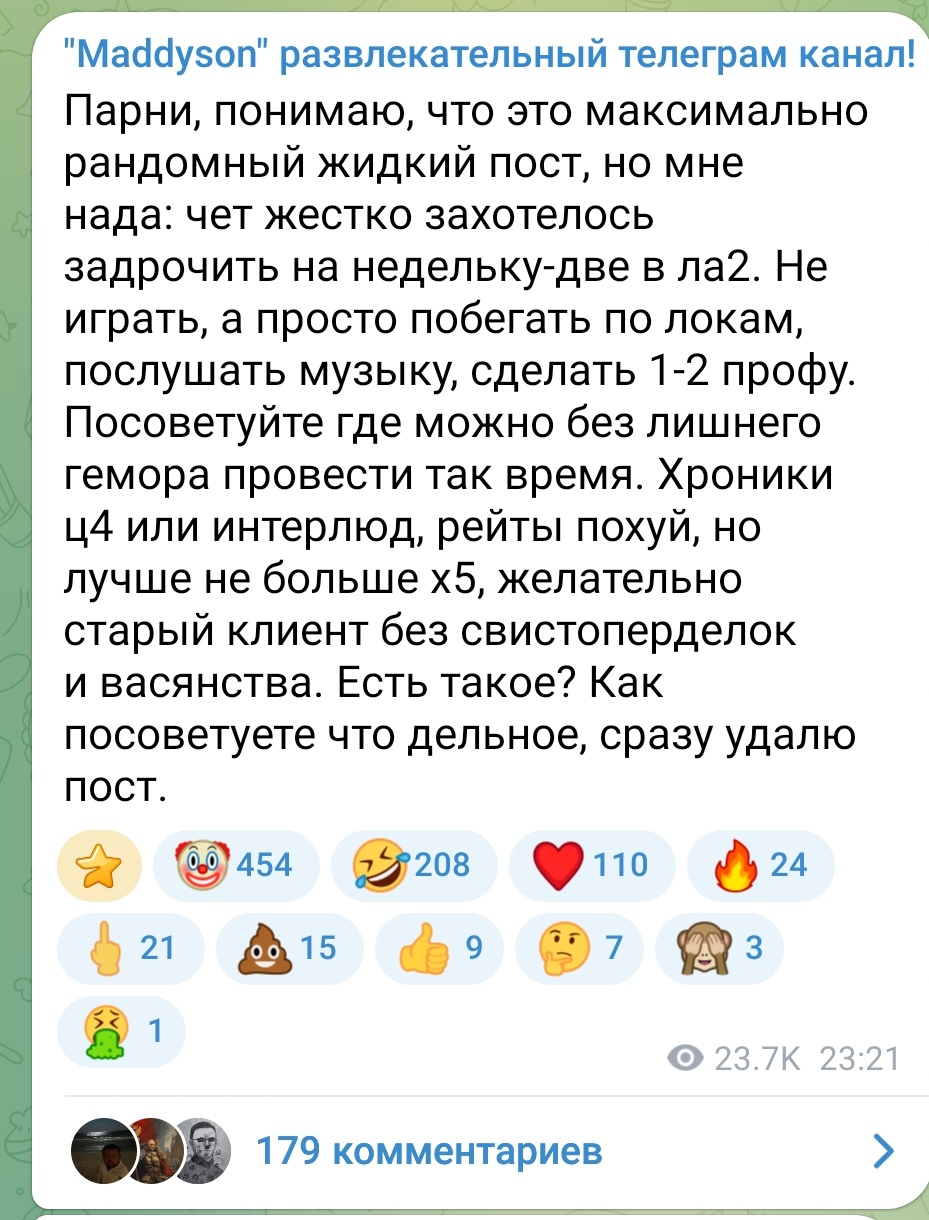 Илья нет нормальных лоурейтов сейчас к сожалению, ВООБЩЕ НОЛЬ у вона есть х20, к лету он планирует открыть х0.01 вот это будем мясо сейчас на его х20 - 90% всей л2 богемы пасется, там буквально ноль места где бы не бегали табуны людей, в независимости от уровня