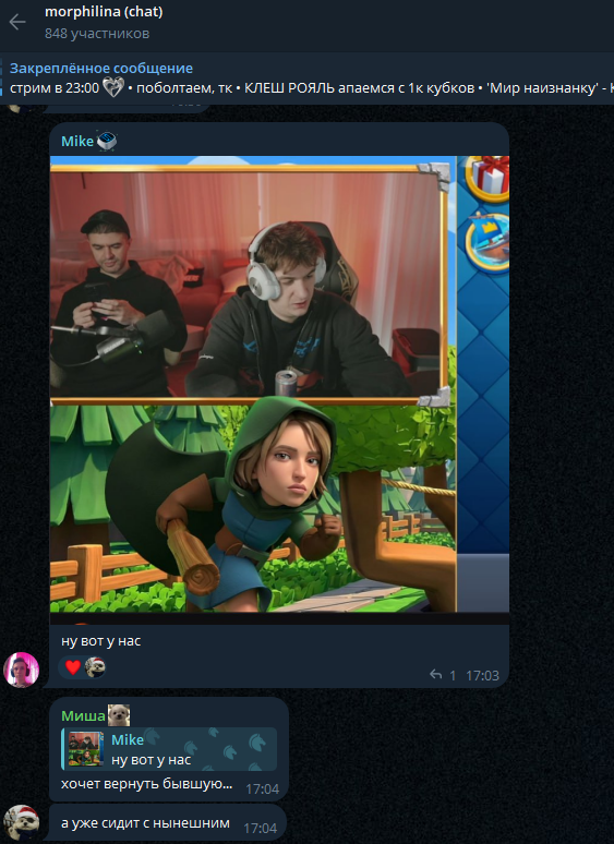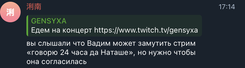 Ебать Вадим вкидывает сегодня на стриме. Сейчас говорит что я то могу позвонить Генсухе, только она трубку не возьмет. До этого говорил что мог бы провести стрим 24 часа, но нужно же ее согласие, она не согласиться))))