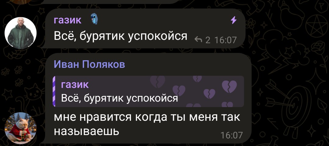 >>26050829 На Галюсика ненаговаривай, злобный завистливый человек никогда не найдёт общий язык с добрым и светлым, а им комфортно вместе, Галя только угорает с ее рукожопости