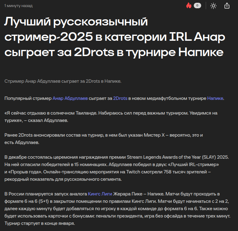 >>26071758 Прям совсем здоровый человек в принципе тогда стримы не будет смотреть, давай дальше пойдём. Я специально отметил "одиноких" потому что основной запрос в стримерах из этого исходит, включаешь просто потому что скучно и одиноко.