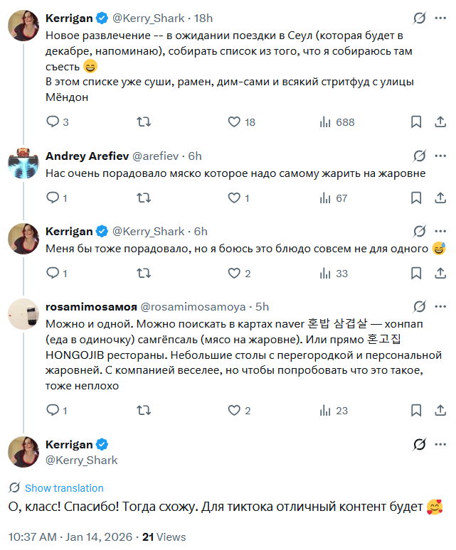 Я бы хотел. Мы бы гуляли с толстой Керри по Сеулу, ели лапшу и я бы слушал ее бубнеж про то какие все кругом мудаки, Как ей подговнил краш и как ее пытался выкурить из подвала сосед и что вижу плохо снимает видео и что мальвина ее уже заебала.