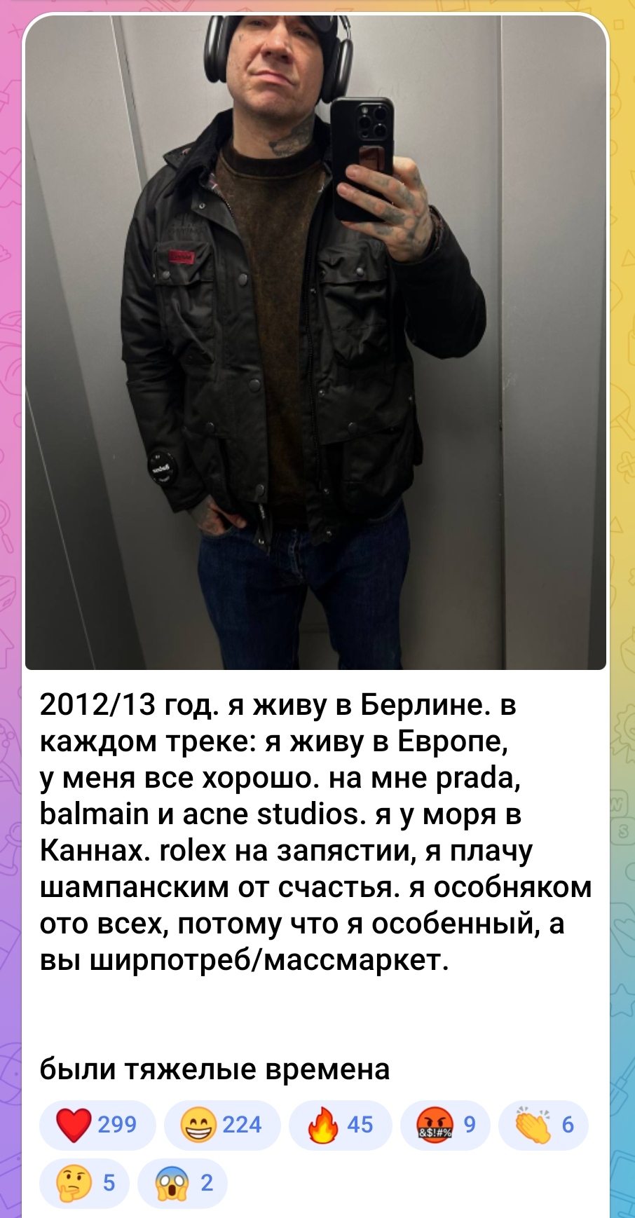 Про микси вообще смех, очевидная попытка в постиронию. Да и кто теперь поверит торчку, который типа на сторону антихайпа метнулся, только его все равно лошком сд назвал, короче ни туда, ни сюда челик, ныне раб похожей на смерть героинщицы или кто она там