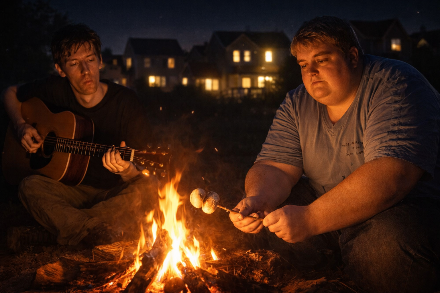 Душевное! Даже не хочется думать чьи это яйца жарит на костре Вових.