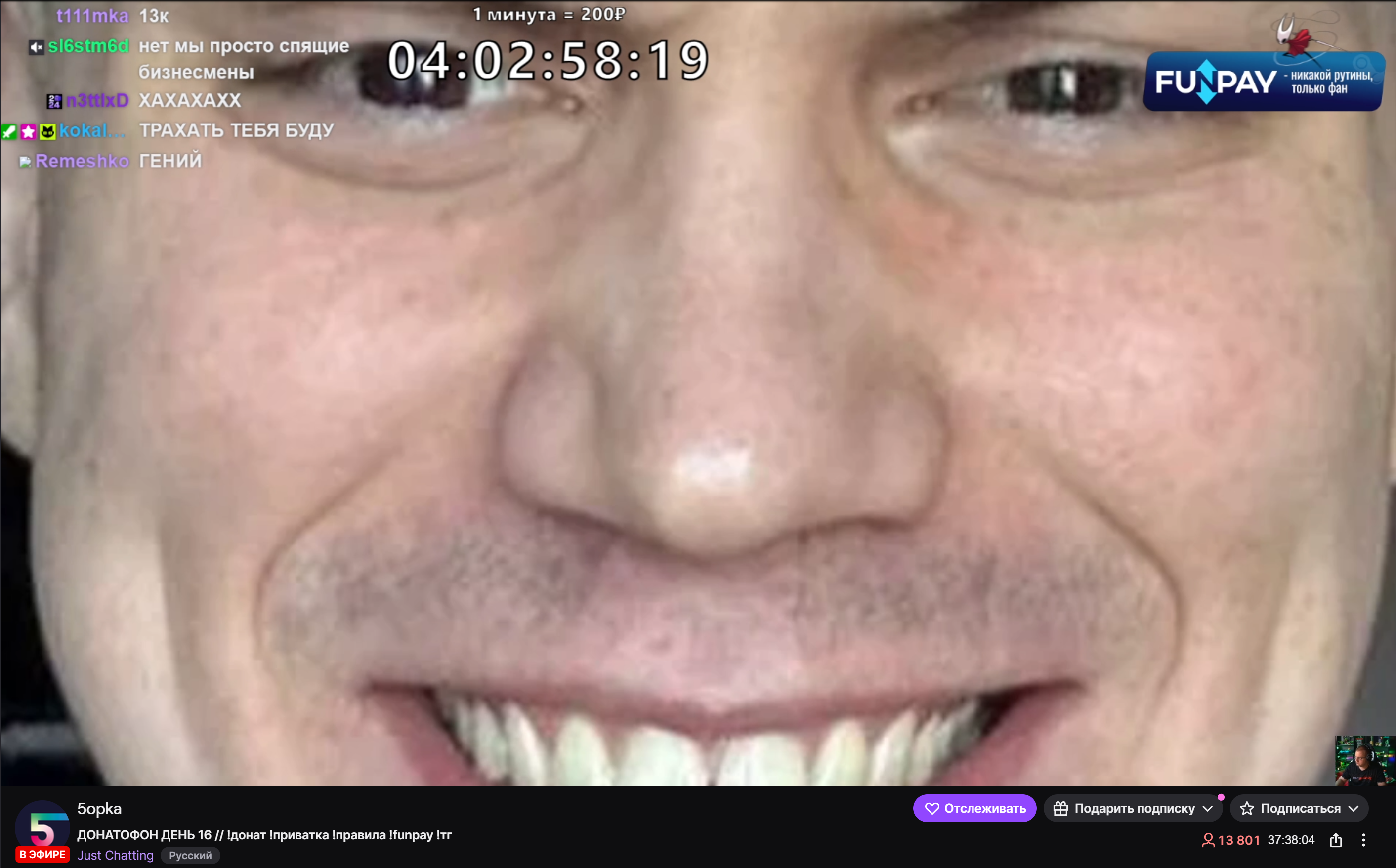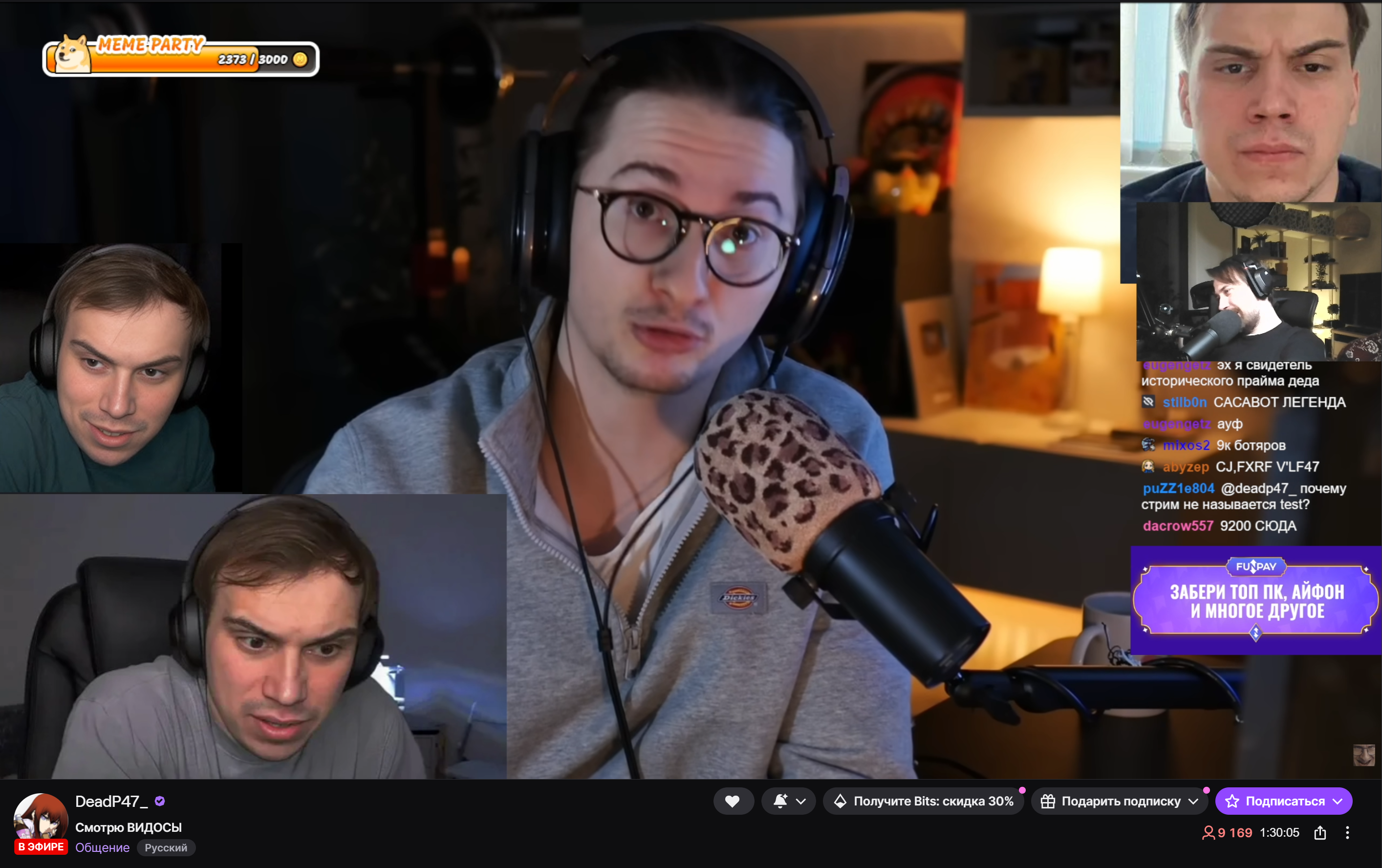 Про 30к на стриме хуй-знает-кого непопулярного (пятерка, кажется) с еблом хуй-знает-кого, видимо, популярного (сасавота)