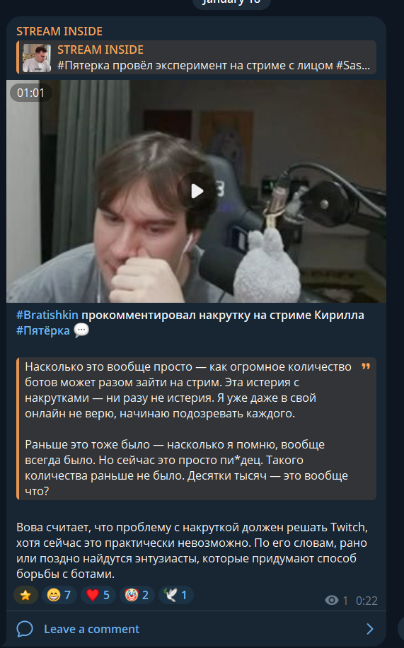 тик ток попался где братишкин говорит, что из-за всей этой шизы с ботами теперь и он верит в это и сомневается в своем онлайне. И что вообще разочарован, что ботов так легко накрутить. Но в треде находятся долбаебы что защищают ботоводов и хуйню про авторизованных ботов высирают