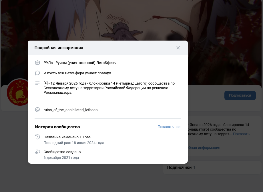 >>26098490 Шизик, который возомнил себя главным мерилом вкуса во всей "летосфере" и выпиливал группы по желанию левой пятки или потому, что кто-то из них его ЧСВ ущемил. Из одной группы чуваков посадил. При этом сам нахрюкивал как минимум на дискредитацию, также его собственную говногруппу банили за ЦП.