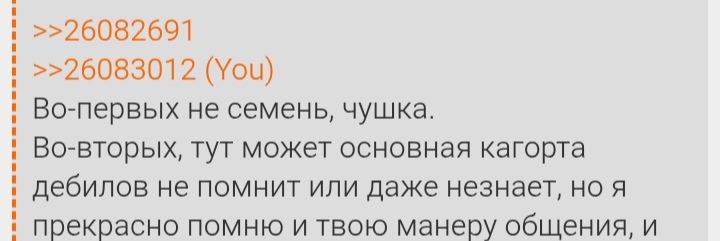 >>26082691 >>26083012 Во-первых не семень, чушка. Во-вторых, тут может основная кагорта дебилов не помнит или даже незнает, но я прекрасно помню и твою манеру общения, и то, как мы палили тебя на том, что ты про себя фотожабы рисуешь и сам же в треды выкладываешь, вниманиеблядок. Напомнить, как оригинал фотографии появился несколькими месяцами позже, чем фотожабы, которые стали появляться даже ДО набега? Ну и "колоритным" себя только ты и твои Семены считаешь. У всех остальных после твоих рулетных похождений твоё упоминание в тредах только желание проблеваться вызывает. Так что сгинь нахуй из треда, не позорься.