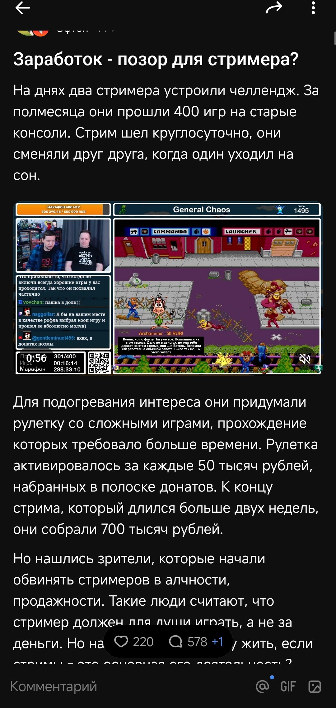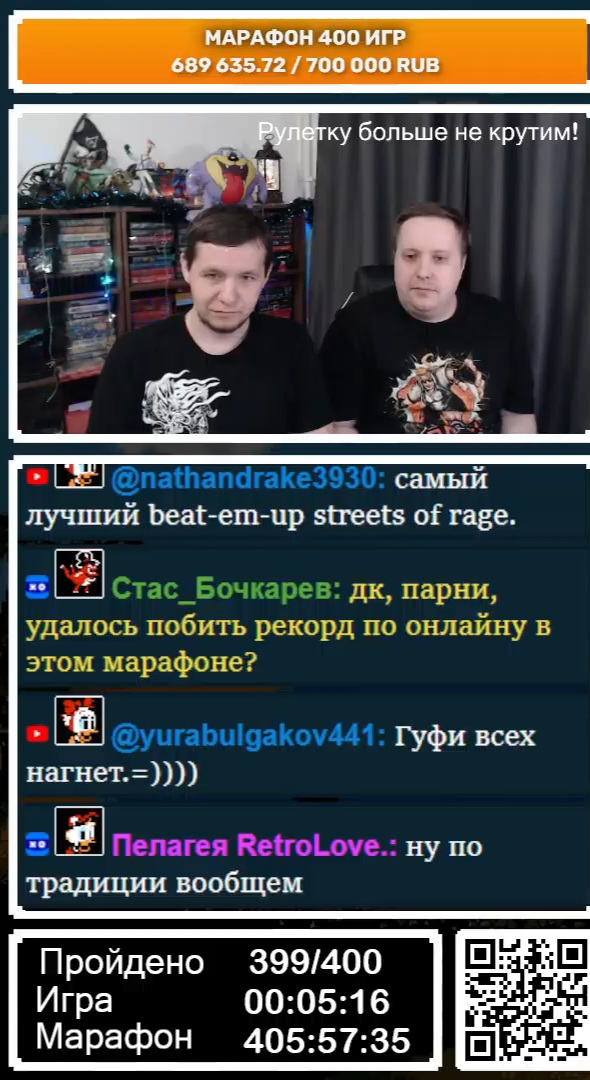 Ну что. Наконец-то закончился этот легендарный по ебанизму марафон Кулька и Веталя. Я никогда в жизни не задуду подобной ебанистики со стороны народа. Задонатили более 800 тысяч рублей (куча донатов по Сберу и крипте) двум безработным лодырям, которые на протяжении почти трёх недель кормили своих зрителей низкосортным дерьмом, а те в ответ кидали бабки и причмокивая просили еще. Настолько конченной аудитории, чем в ретро-сообществе — нет больше нигде. Все игры игрались на автомате. Как не зайдёшь — сидят с унылыми лицами и ругают игры. Паша всё сказал по делу. Какой может быть хороший контент от Вождя, когда народ заслуживает только говно.