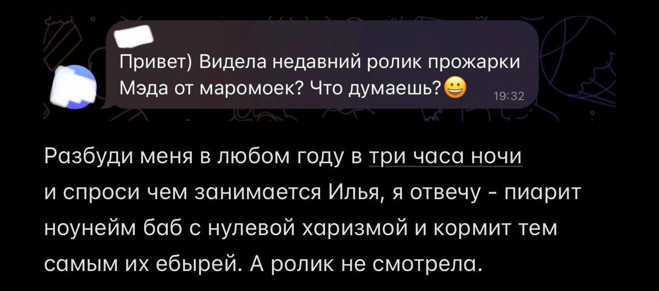 >>26120262 Мы стали замечать слишком много конформизма и популизма в поведении бородача, если раньше это было точечно, то сейчас он буквально стал audience capture. Зрители шизи его хейтят и давят - он давит вместе с ними, зрители шизи сочувствуют - он сочувствует вместе с ними, его зрители-инцелы хуесосят прадена за его посты в чате у попипупы - он высирает своё мнение не спрашивая о ситуации у самого индуса.