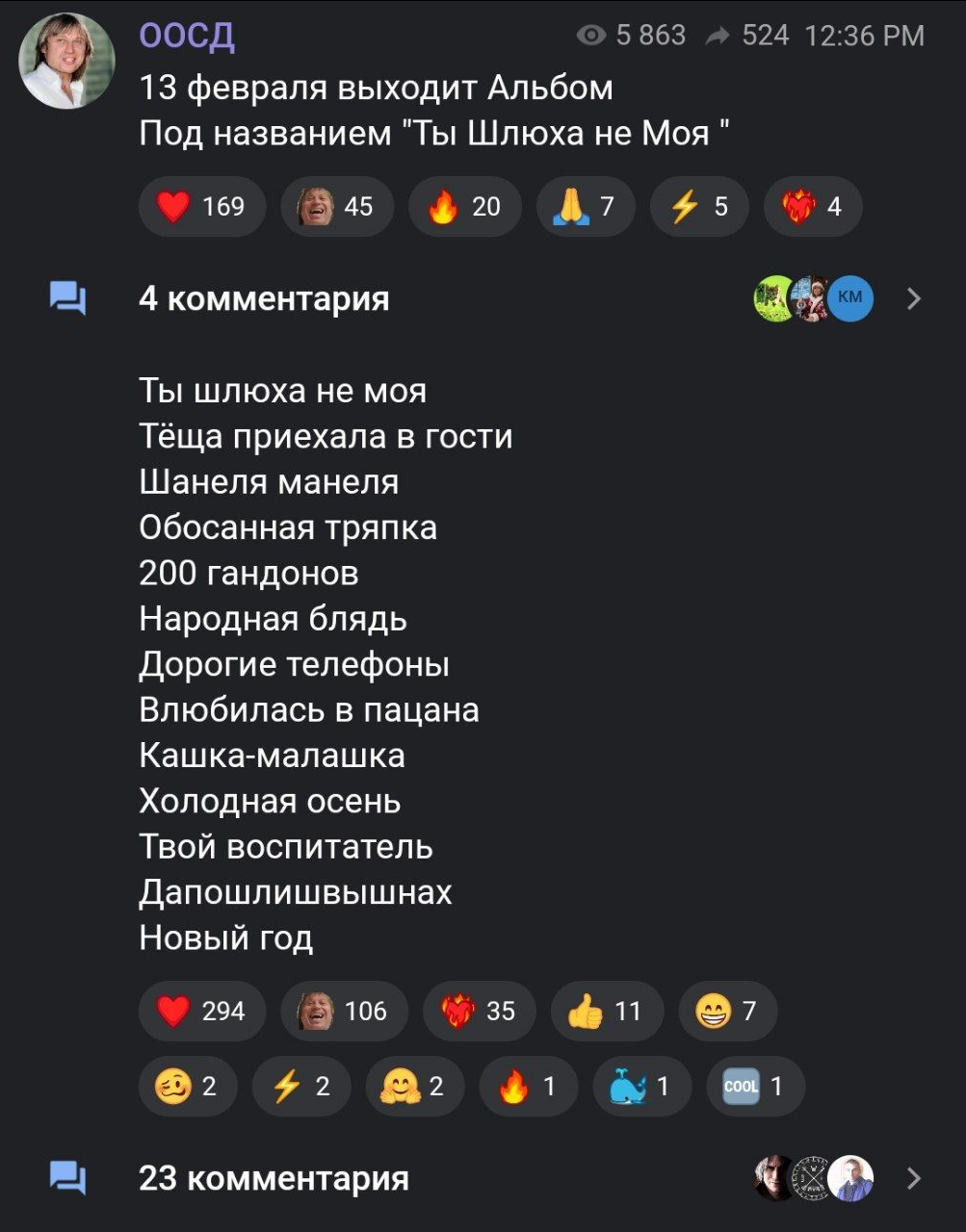 Гренландский вопрос Мчит паровоз Кто говна в тред занес Футбольный клуб Окжетпес Марамоичий вброс Писюн подрос Пес Барбос План Барбароса На жопе волосы Подсосы Сороса