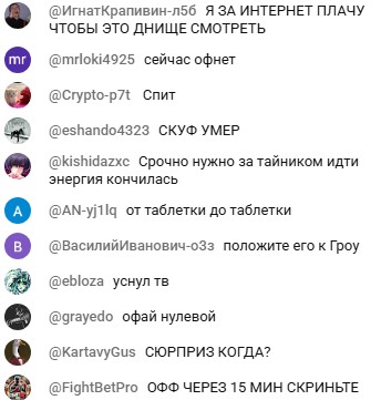 На еду демон зажмотил, на алкоголь зажмотил, на сигареты зажмотил. На стрим хуй забил, в кадр приходит чуть чаще гороха, завозит так же. Гости не приехал ни один: вуден, гусь, вжлинк, наумов, даже гетлаки сквозь запах мочи учуял тухлаторию.
