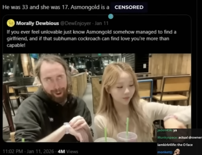 у бабья подгорает, что асмонголд - некрасивый, немытый, белый богатей 30+летний, молодуху 23летнюю какую-то шпилит, потому что по их мнению такие как он должны в нищете в кулачок дрочитьи быть причисленными к группе инцелов, которые являются по факту самой ненавистной группой людей среди нормискота нынче