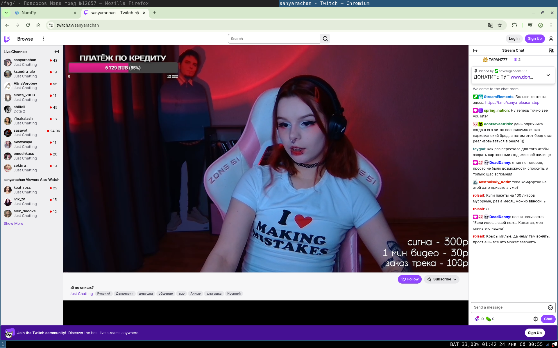 я не рыжопер, последний раз на ее стриме был в ноябре, она по утрам стримит, не пересекаемся