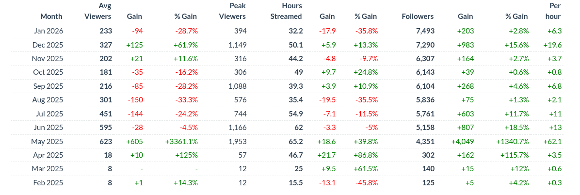 >>26133467 Так всё норм со статой, ясен хуй что без колаб, накруток, засвета сосков зрители не будут расти. Но по активности чата/сборам с аука она даст пососать многим ботоводам с нарисованными 1к+, вроде калонормовой