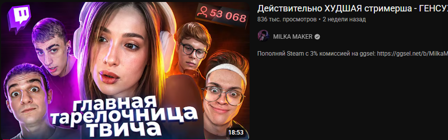 >>26144859 Да там очень забавные типы в комментах таких видосов, они реально думают что стримерши типа Генсухи, Акулич, даже Гаечки живут исключительно на донаты