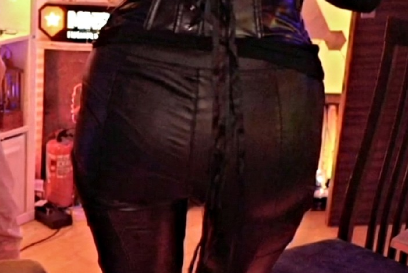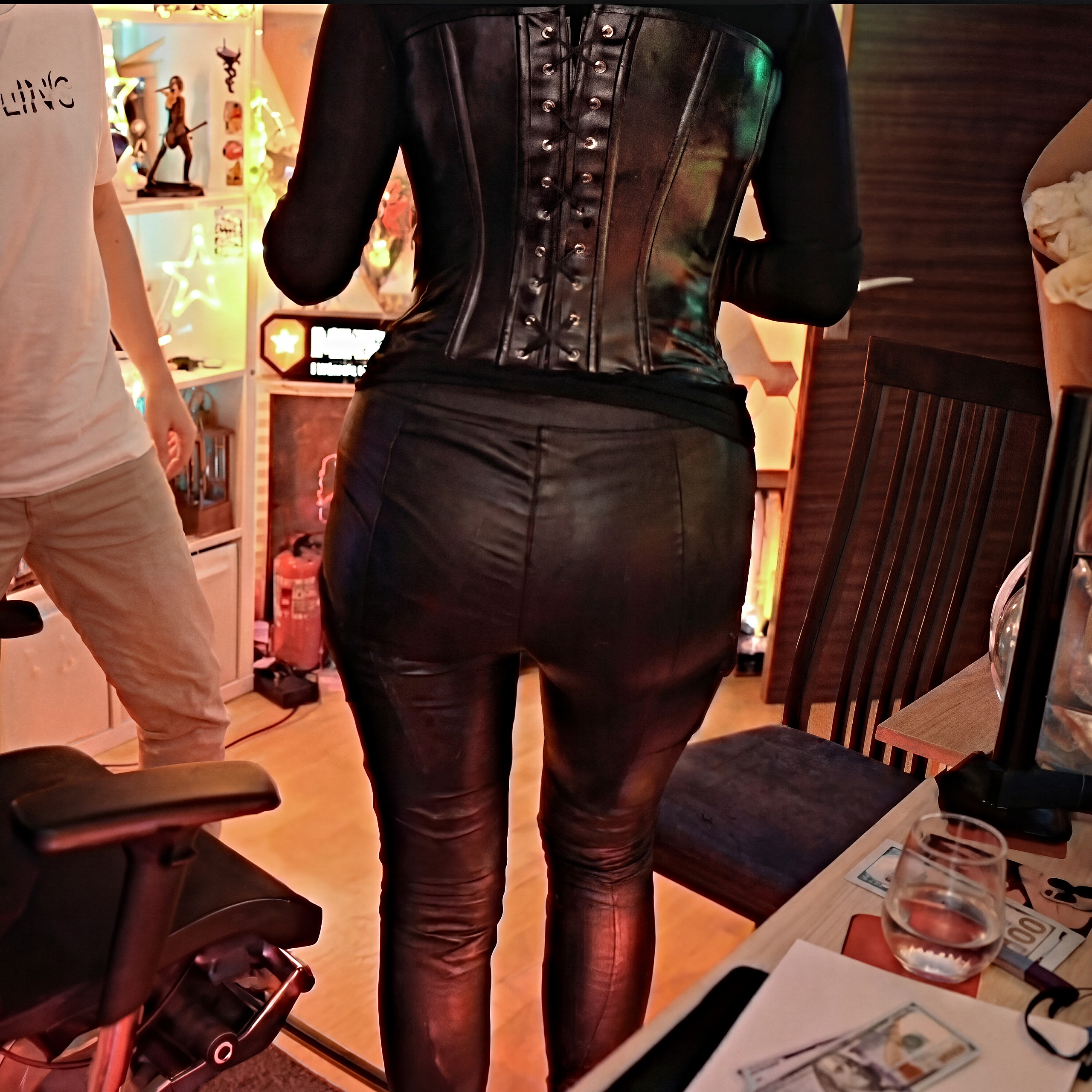 >>26146653 Даже корсет не может стянуть ее жирное пузо, она буквально вся тянутая перетянутая - кожаные штаны, корсет, накладки на бедрах.