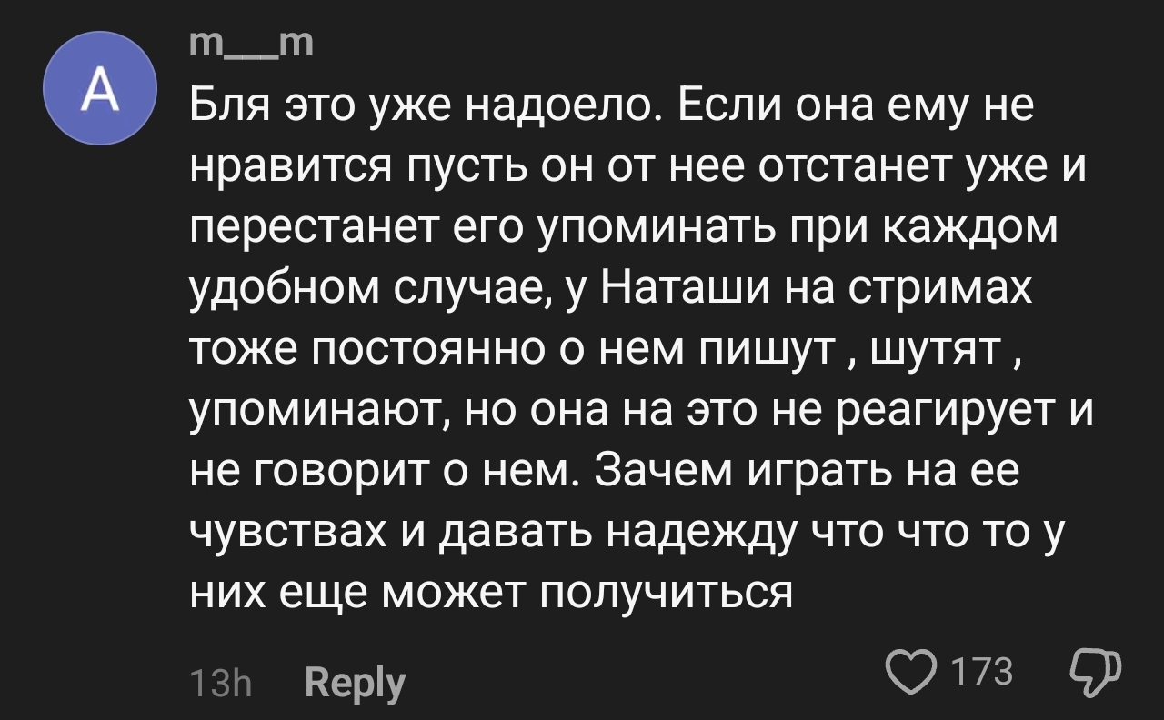Во всей этой ситуации с неразделённой любовью чморф к скайвротволкеру мне нравится как "тимурчик" будучи зажатым и не уверенным в себе типом искусно и оправданно морозит и игнорит чморф, молодец.Было бы ахуенно если бы так же начал делать опасный Алеша, начал бы ее игнорить в ирл, не заходил к ней на стримы, перестал с ней контачить и прям перед ее носом начал бы водить Оксанок к себе в апартаменты, хотелось бы увидеть второй отъезд в дурку Чморфы